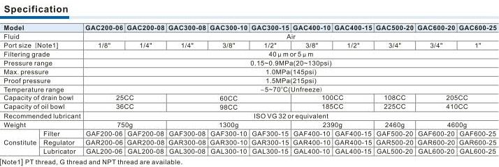 - Product Code: GAC Series F.R.L. combinatio